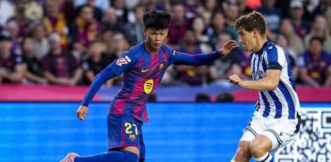 9月29日讯 北京时间今天凌晨,年仅17岁的巴塞罗那新星德罗迎来职业生涯高光时刻——他在对阵皇家社会的比赛中首发出场,完成了一线队正式比赛的处子秀。此役,巴萨在主帅弗里克的带领下,以2-1力克对手,反超皇马登顶西甲积分榜榜首。
