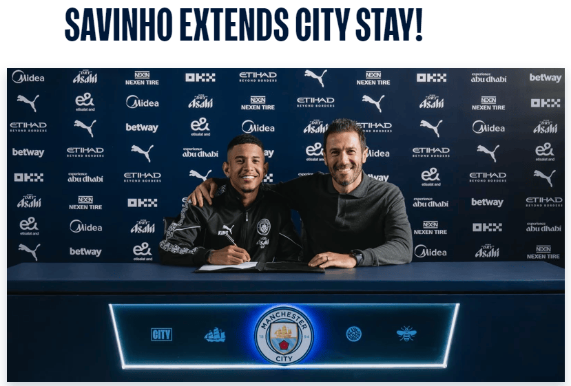萨维尼奥已与曼城签订一份新的长期合约,这份合同将把这位前锋在阿提哈德球场的效力时间延长至2031年夏天。