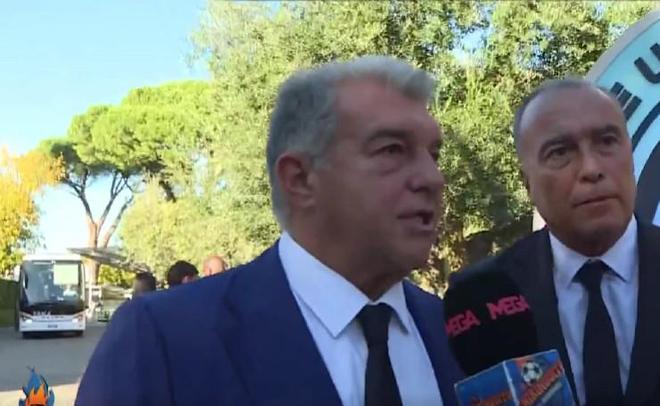 时间:2025-10-09 08:44:33日前,巴萨主席拉波尔塔应邀出席了在罗马举行的欧洲俱乐部联合会(ECA)前身——现称“欧洲足球俱乐部联盟”(EFC)的大会,并受到了巴黎圣日耳曼主席、EFC现任主席纳赛尔的热情接待。期间,他接受了西班牙六台记者的采访。