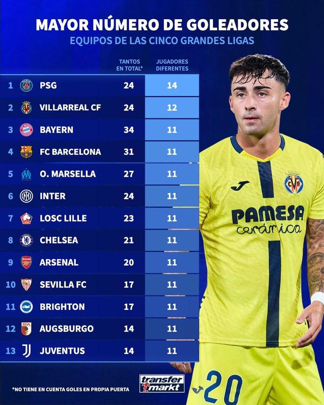 时间:2025-11-13 09:04:55北京时间11月13日,德转统计出了本赛季至今欧洲五大联赛进球球员人数最多的13支球队,巴黎圣日耳曼14名球员在法甲破门排名第一,比利亚雷亚尔12人西甲破门第二,包括拜仁慕尼黑、巴塞罗那、国际米兰、切尔西、阿森纳以及尤文图斯在内的11支球队均有11名球员在联赛中破门并列第三。