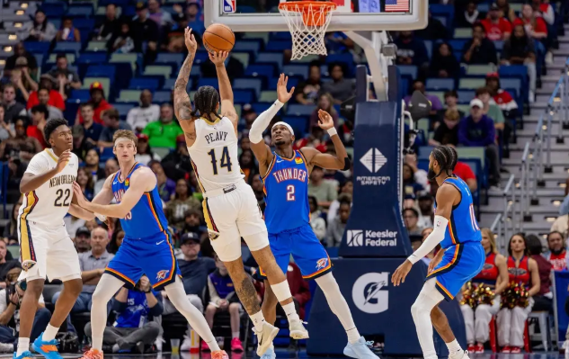 第二节,鹈鹕开局状态堪忧,最大分差一度达到28分。尽管在节中阶段他们展现了反击的能力,将分差缩小至13分,但雷霆的攻击力依然锐利,保持着明显的领先优势。本节比赛,鹈鹕的墨菲三世表现亮眼,砍下11分,其中包括3记三分球。经过两节激战,雷霆以69-56领先。
