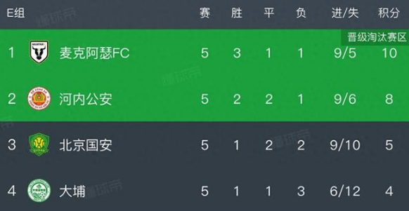 亚冠积分榜,北京国安1:2遭河内公安逆转,提前一轮出局
