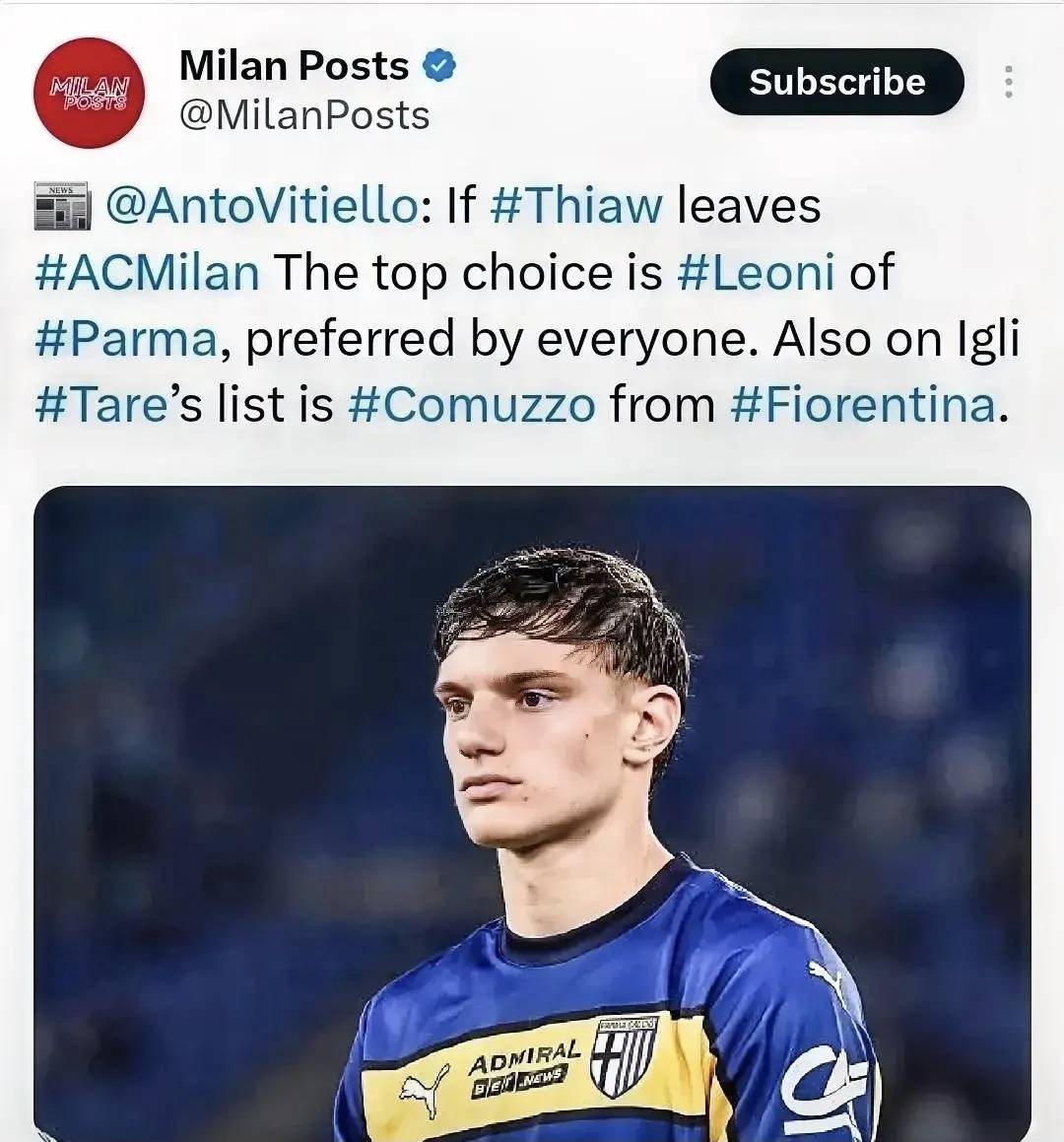 参考米兰签约里奇,咱们冬季窗口时候就报道说里奇已经是米兰球员了,夏季窗口会加盟,莱奥尼或者科穆佐也一样,他们在赛季没结束时候就被爆出他们新赛季有可能成为米兰球员。帝奥理想价格走,估计就买这两个小孩之一,穆萨三千万欧元走,就会考虑买杜埃,米兰新赛季单线作战,五名中场轮换三个位置肯定够用,最重要的是福法纳不需要替补。