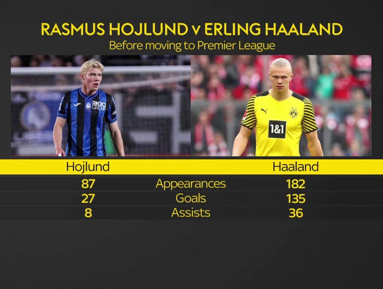 两位顶级球探也提醒前曼联主帅滕哈格,其中一位说:「霍伊伦德还没有证明自己,而英超联赛是一个非常不宽容的地方,尤其是如果身穿曼联球衣的话。他是左脚球员,身高马大,所以难免被称为新哈兰德之类的,但两人不在同一级别。哈兰德是绝世天才,霍伊伦德远不及他,射门很不稳定。」