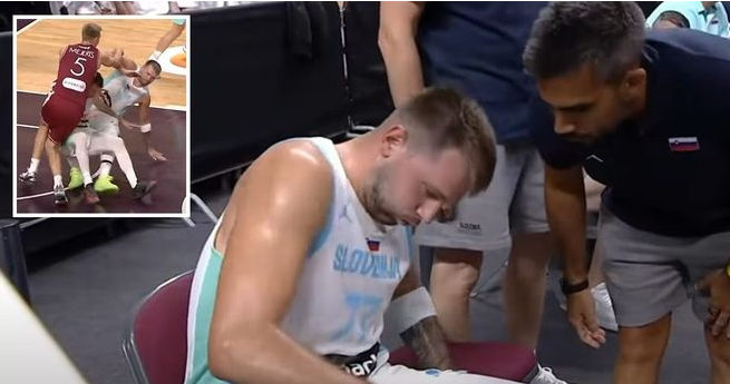 那是在一次防守回合中,队友格雷戈尔-赫罗瓦特压到了东契奇的膝盖。东契奇一瘸一拐地离开赛场,显然是受了伤。受伤后,东契奇回到了斯洛文尼亚队的替补席,继续观看这场比赛。