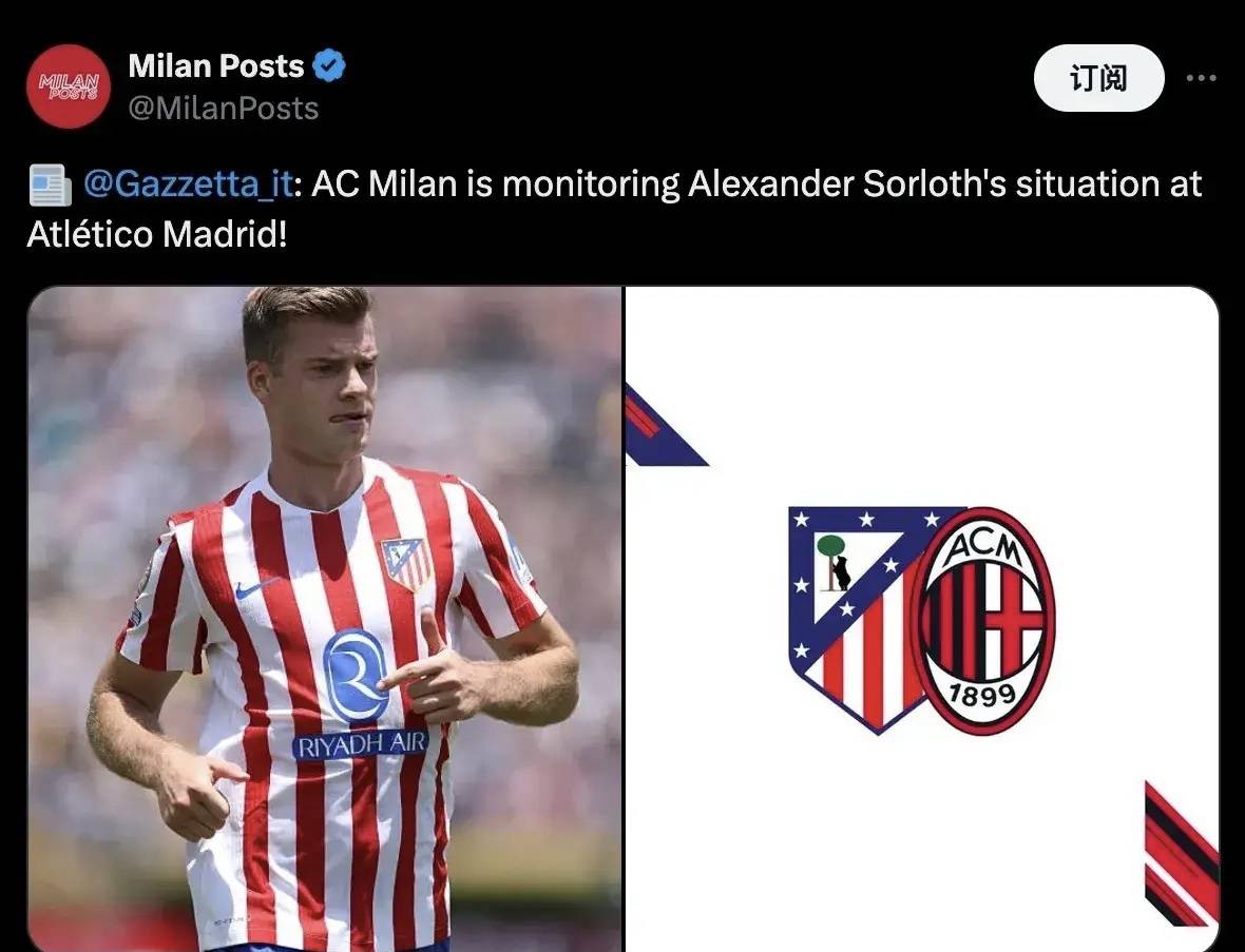 米兰对亚历山大·索罗斯有兴趣,准备询问马竞是否出售
