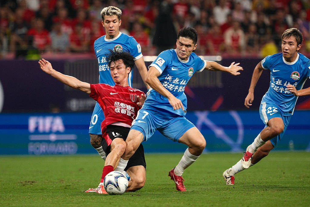 成都蓉城队(3-4-2-1):32-刘殿座;5-提莫-莱切特、22-李扬(90+3’28-杨帅)、26-元敏诚;11-古尔芬克尔、16-杨明洋(90+3’15-严鼎皓)、8-周定洋、39-甘超(80’2-胡荷韬);10-罗慕洛、7-韦世豪;9-费利佩