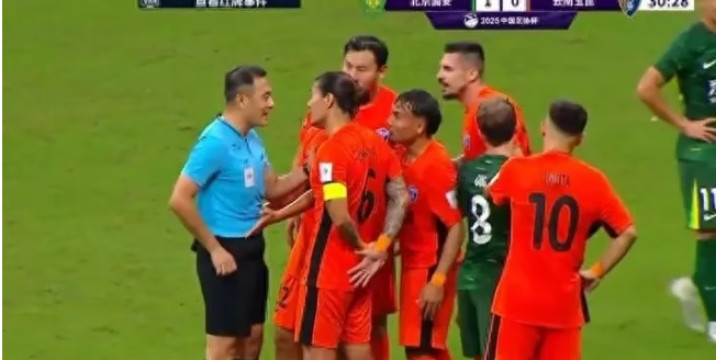 事件发生在20日晚半决赛第31分钟,国安外援法比奥在持球时遭到布尔克与队友迪力穆拉提夹防,过程中布尔克将法比奥放倒。当值主裁刘威第一时间出示红牌,VAR复核后维持判罚。玉昆在少一人作战的情况下迅速失守,最终0-7惨败。