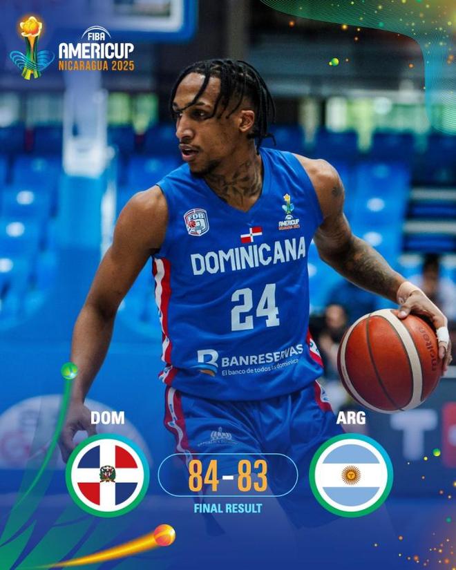8月25日讯 男篮美洲杯小组赛,阿根廷男篮83-84加时惜败于多米尼加男篮。