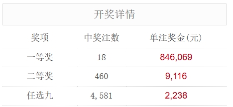 足彩25121期开奖结果:一等奖18注 单注奖金84.6万元