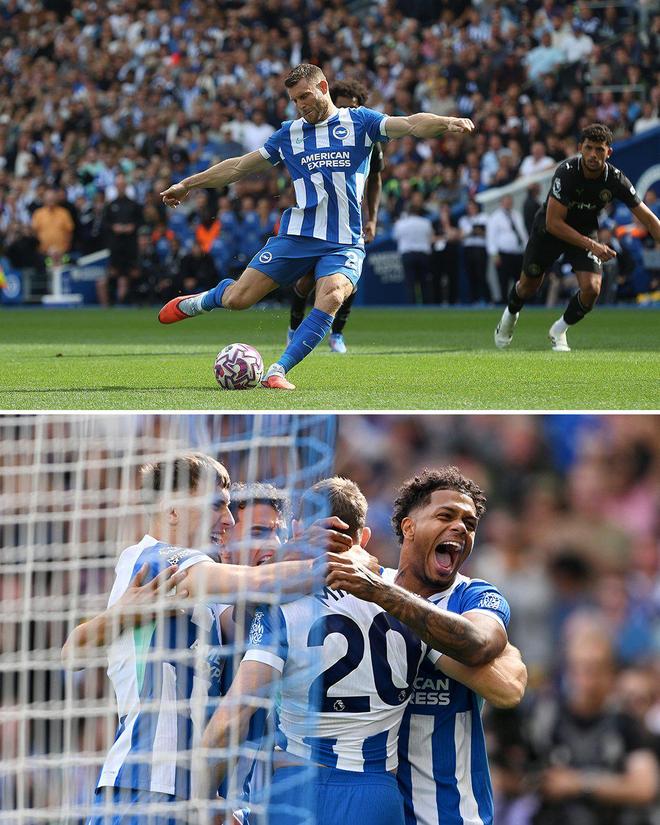 英超-曼城1-2遭布莱顿绝杀!39岁米尔纳破门 哈兰德建功
