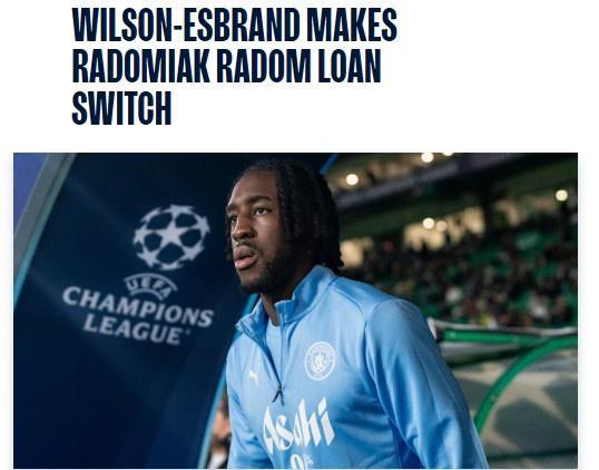 曼城官方:后卫埃斯布兰德租借加盟拉多米亚克一个赛季