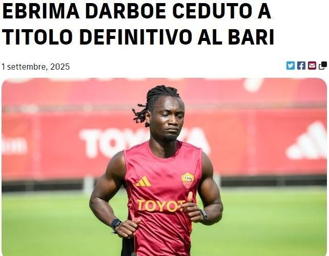 官方:罗马中场达尔伯转会加盟意乙巴里,签约至2028年