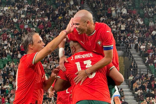 在何塞-阿尔瓦拉德球场举办的一场慈善赛中,葡萄牙明星队以4-1的比分击败世界明星队。