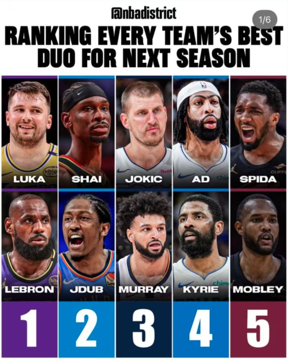 时间:2025-09-18 09:48:54北京时间9月18日,美国媒体NBA district为联盟30支球队(25-26赛季)的二人组进行了排名,换言之也评选出了联盟最强的二人组,洛杉矶湖人队的詹姆斯+东契奇被评选为最强二人组。