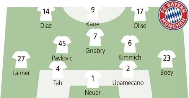 德媒预测拜仁首发: