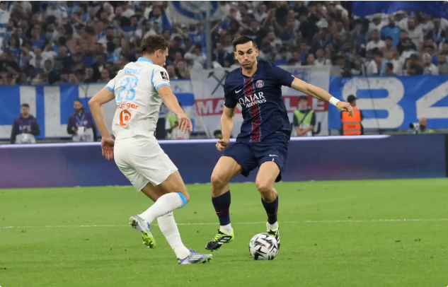 巴黎圣日耳曼与马赛的国家德比战本该9月22日凌晨进行,由于天气原因被推迟到今日。本场比赛,马赛前锋特拉奥雷和孔多比亚因伤缺阵,格林伍德领衔首发阵容,古伊里出任单箭头;巴黎圣日耳曼方面,登贝莱、杜埃和内维斯因伤缺阵,阿什拉夫客串右边锋,与贡萨洛-拉莫斯和克瓦拉茨赫利亚组成三叉戟。