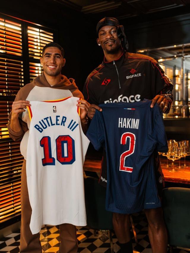 勇士社媒晒照:巴特勒与大巴黎球星阿什拉夫交换球衣