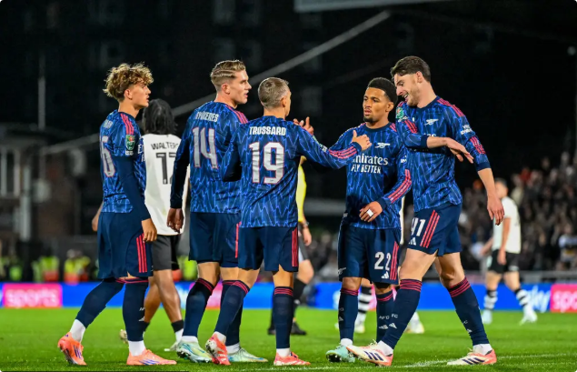 阿森纳:13-凯帕、4-本-怀特(第71分钟6-加布里埃尔)、2-萨利巴、3-莫斯克拉、49-斯凯利、16-诺尔高(第71分钟14-约克雷斯)、10-埃泽(第81分钟41-赖斯)、22-恩瓦内里、7-萨卡(第63分钟56-道曼)、11-马丁内利(第81分钟19-特罗萨德)、23-梅里诺