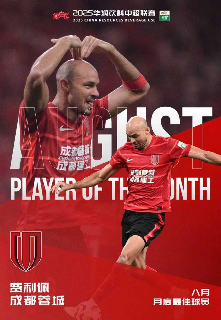 北京时间9月25日消息,今天中超官方公布了8月两个重要奖项的人选,目前排名榜首的成都蓉城队成为最大赢家,主帅徐正源和前锋费利佩分别当选8月最佳教练和球员。