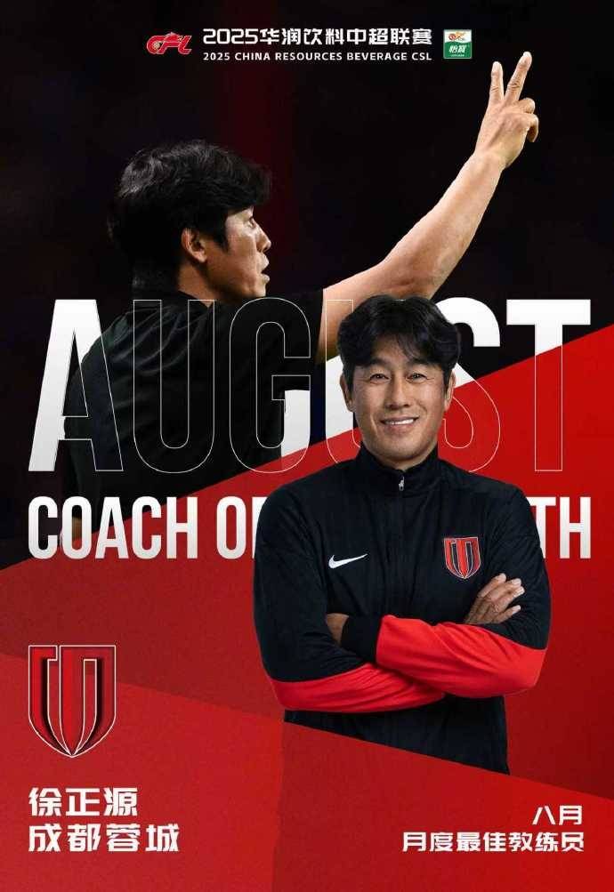 其中徐正源率领成都蓉城在8月出战4场联赛,3胜1平保持不败,打入9球仅丢2球,并且4-1击败海港这样的争冠对手,5-1魔鬼客场击败云南玉昆,此外还率队进军亚冠精英联赛正赛。