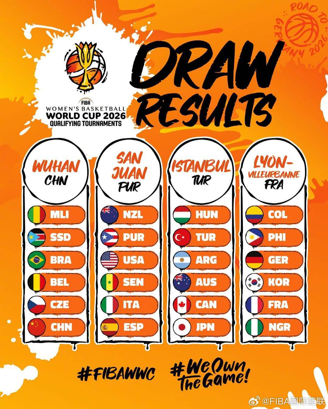 2026年女篮世界杯预选赛将于2026年3月11-17日举行,比赛由土耳其伊斯坦布尔、法国里昂(维勒班)、波多黎各圣胡安和中国武汉四座城市共同承办,每个赛区各有6支球队参赛。