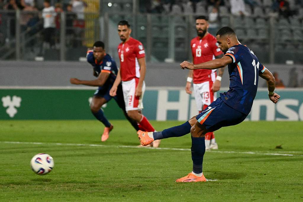第71分钟,马耳他制造威胁,范德芬及时禁区内解围。第79分钟,德佩左脚传中,邓弗里斯高高跃起头球攻门被马耳他门将扑出。
