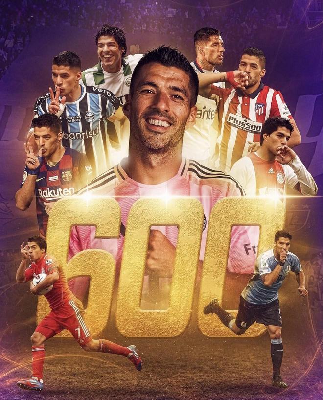 苏亚雷斯在1025场正式比赛中打入600球。