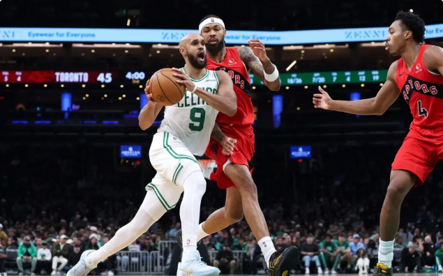 凯尔特人队首发:德里克-怀特、佩顿-普理查德、内米亚斯-克塔、杰伦-布朗、克里斯-布歇