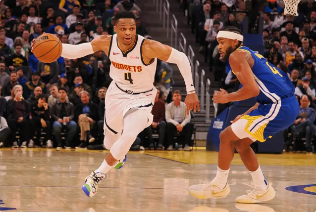 24-25赛季,威少为掘金队打了75场常规赛,场均出场27.9分钟,交出13.3分4.9篮板6.1助攻1.4抢断的数据。