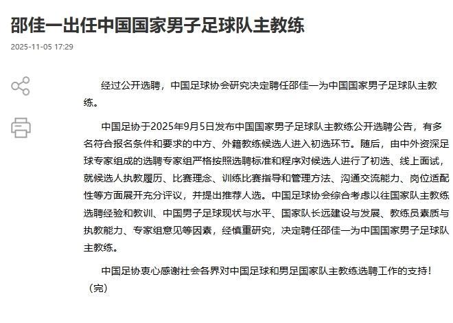 时间:2025-11-06 09:22:18周三,中国足协宣布邵佳一将出任国足新主帅,邵佳一成为国足史上第一位80后主帅,也成为21世纪第9位本土国足主帅。
