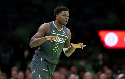 森林狼队首发:安东尼-爱德华兹、贾登-麦克丹尼尔斯、朱利叶斯-兰德尔、鲁迪-戈贝尔、丹特-迪文琴佐
