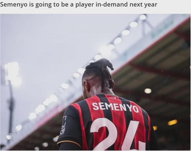 我想尊重伯恩茅斯,让他们享受自家球员的表现吧,现在才11月份,他们无意在一月份放走塞梅约。有很多针对塞梅约的兴趣,并且他有违约金条款,所以情况很有意思,但我认为这是明年夏天的情况,一月份,基本上不可能。”