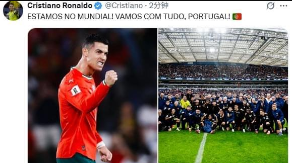 葡萄牙晋级世界杯!C罗发文庆祝:我们将全力冲刺
