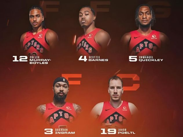 此外,作为首发阵容中最稳定的外线威胁奎克利,也在进攻中大量使用幽灵掩护制造换防失误,进而让持球人得到得分机会。如果对手遇掩护后选择换防,巴恩斯、巴雷特、英格拉姆等人也都具备惩罚错位的能力。