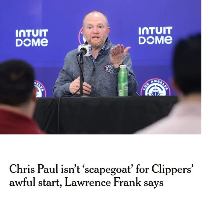 “这不是我们熟悉的那支快船该有的篮球风格,”弗兰克说道,“我对此全权负责。但球队需要带着更强的专注度、拼劲、韧性和决心去比赛。我们有能力变得更好,我也坚信球队会迎来好转。”
