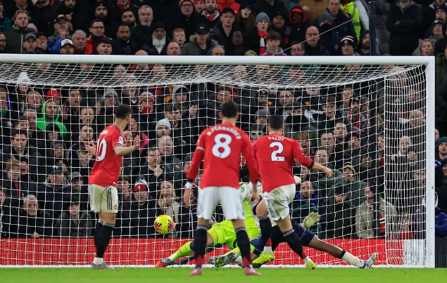 下半场比赛中,第58分钟曼联率先打破僵局,前场围攻中右边路迪亚洛持球吸引防守,随后将球回做中路,卡塞米罗跟进远射在防守队员干扰下形成传球,达洛特禁区内中路停球右脚低射一气呵成,球钻入球门左下死角,曼联队1-0领先。