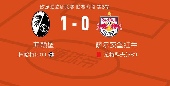 欧足联欧洲联赛联赛阶段第6轮,弗赖堡迎战萨尔茨堡红牛。比赛中,萨尔茨堡红牛球员拉特科夫被罚离场。随后,弗赖堡由林哈特攻入制胜进球。最终,弗赖堡以1-0战胜对手。