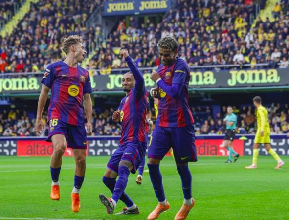 时间:2025-12-22 10:15:53北京时间12月22日凌晨,西甲第17轮继续进行,排名第三的比利亚雷亚尔主场迎战巴萨。第12分钟,拉菲尼亚打进自己制造的点球。第39分钟,维加飞铲亚马尔被红牌罚下。第63分钟,德容助攻亚马尔破门。最终,巴萨客场2-0战胜比利亚雷亚尔,迎来联赛的8连胜,以及各项赛事的7连胜,继续领先皇马4分,领跑积分榜。