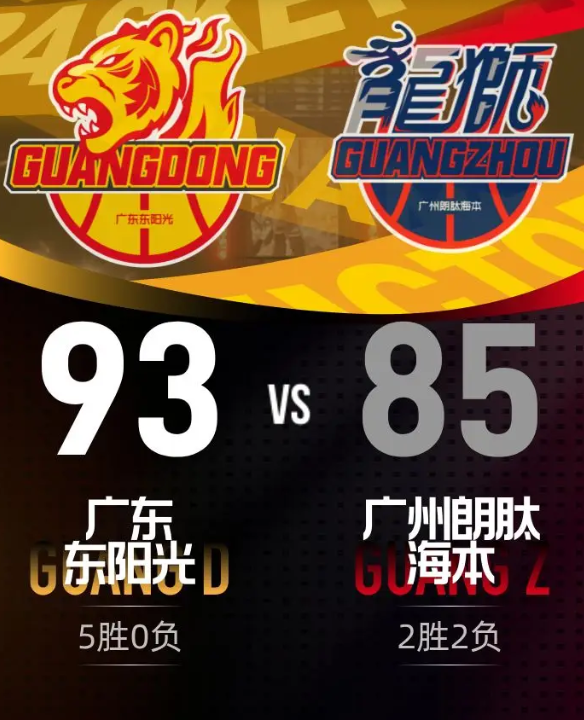 第四节开始,广州朗肽海本全力以赴,努力将分差缩小至71-76。此后,广东东阳光迅速回应,一波进攻将优势扩大至14分。尽管在小节后段广州朗肽海本重新拉近比分,但最终广东东阳光以93-85赢得比赛。