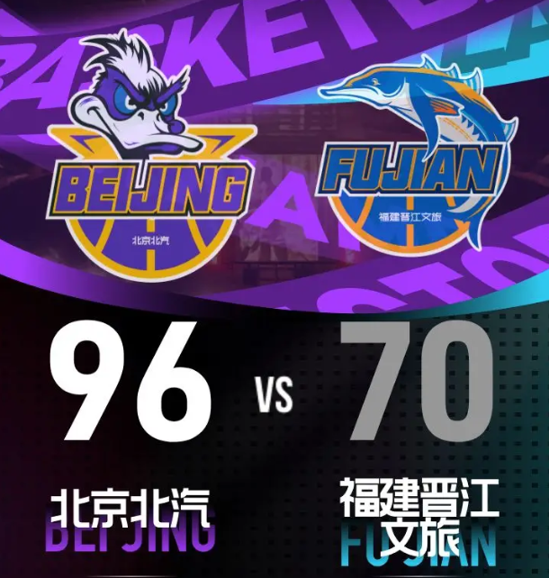 第四节,北京北汽保持强势,牢牢掌控比赛节奏,福建晋江文旅缺乏有效反击的机会。此时,北京北汽的姜文持续发力,为球队贡献了10分,其中包括1记三分球。最终,北京北汽以96-70的比分赢下比赛,展现了他们的强大实力。