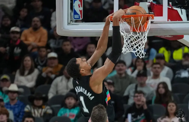 马刺队首发:维克托-文班亚马、斯蒂芬-卡斯尔、达龙-福克斯、德文-瓦塞尔、哈里森-巴恩斯