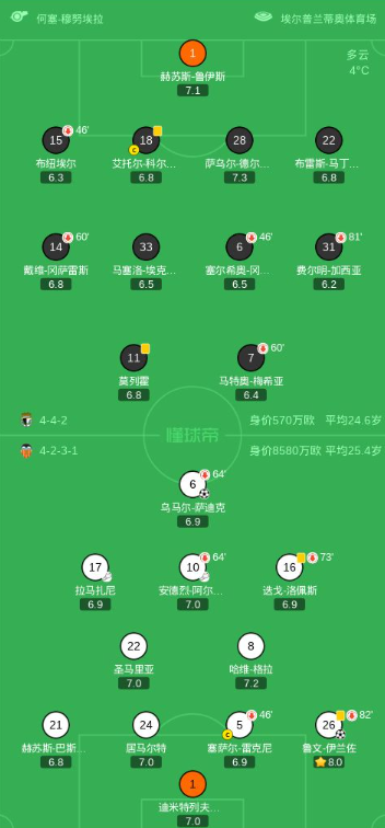 第10分钟,瓦伦西亚球员安德烈-阿尔梅达助攻鲁文-伊兰佐打入一球。