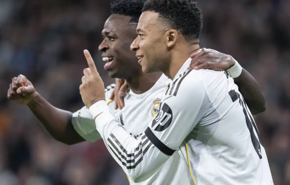 第27分钟,居莱尔传球洞穿摩纳哥防线,维尼修斯横传门前,姆巴佩轻松推射得手,皇马2-0。