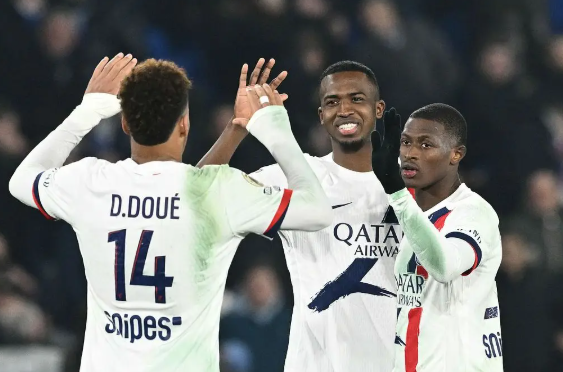 巴黎圣日耳曼:39-萨弗诺夫、5-马基尼奥斯、2-阿什拉夫(75' 红牌)、17-维蒂尼亚、51-威廉姆、25-努诺-门德斯、29-巴尔科拉(59' 19-李刚仁)、87-若昂-内维斯、33-埃梅里、24-马尤鲁(59' 10-登贝莱)、49-姆巴耶(46' 14-杜埃)