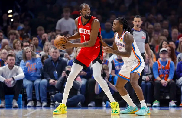 火箭队首发:塔里-伊森、小贾巴里-史密斯、凯文-杜兰特、阿尔佩伦-申京、里德-谢泼德