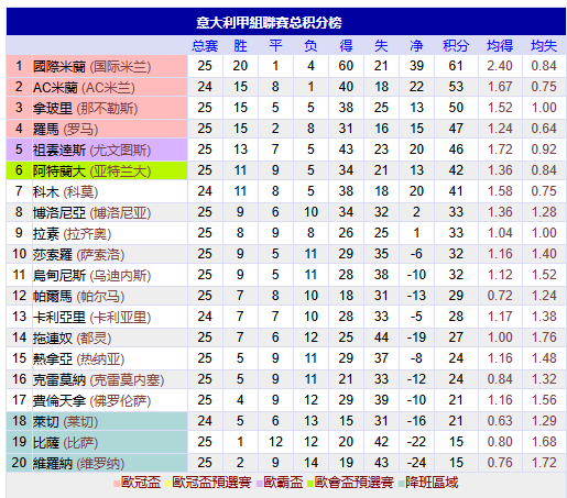 意甲第25轮激战收官,最新积分榜全解析