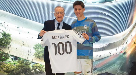赛后,这位土耳其中场从俱乐部主席弗洛伦蒂诺手中接过了纪念球衣。