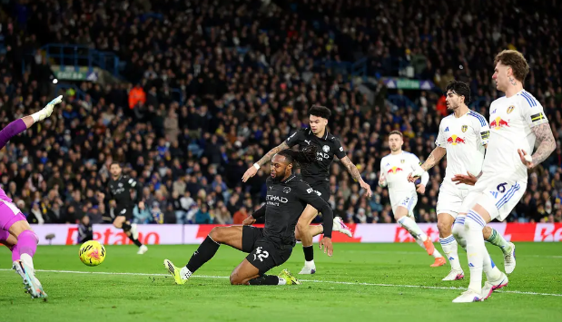 第85分钟,勒温横传,阿姆帕杜射门被曼城后卫挡出。随后,利兹联边路传中,勒温倒钩射门没有踢到,慢镜头回放显示,皮球击中了努内斯的手臂,不过裁判没有表示。