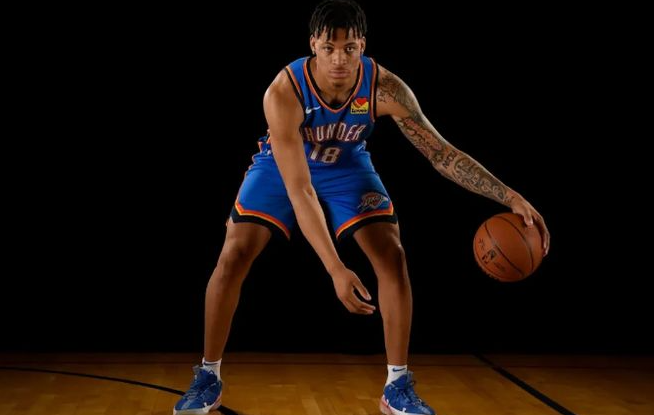 25岁的基昂泰-约翰逊身高195cm体重104kg,臂展达到211cm,2023年他在NBA选秀大会第50顺位被选中。基昂泰-约翰逊短暂效力雷霆9场比赛,场均7.4分钟得到1.2分1.1篮板。
